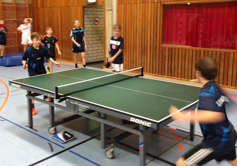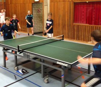 Im ersten Spiel des Tages konnte das EMG die Vertretung der Friedrich-Ebert-Realschule aus Hürth, die in Ex-EMGler Kevin Dreger ihren besten Akteur hatte, souverän mit 7:2 schlagen. Dabei mussten sich die EMG-Jungs lediglich in zwei Einzeln geschlagen geben. Das zweite Spiel bestätigte die eingangs gehegten Vermutungen, und man sah sich einem übermächtigen Gegner der EKR unter der Leitung von Günther Preiß ausgesetzt, die ihrer Favoritenrolle gerecht wurden und mit 8:1 die Oberhand behielten. Den Ehrenpunkt holte dabei Silas Kyrion in seinem Einzel.
