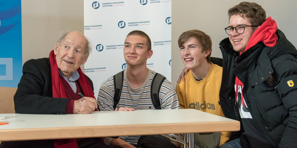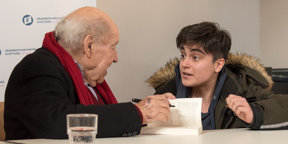 Für uns, Schülerinnen und Schüler des Ernst-Mach-Gymnasiums, war es eine Ehre, dass Sally Perel sich die Zeit genommen hat, uns nicht nur seine Geschichte näher zu bringen, sondern dass auch die Möglichkeit bestand eines seiner signierten Bücher zu erwerben und dabei persönliche Worte zu wechseln.