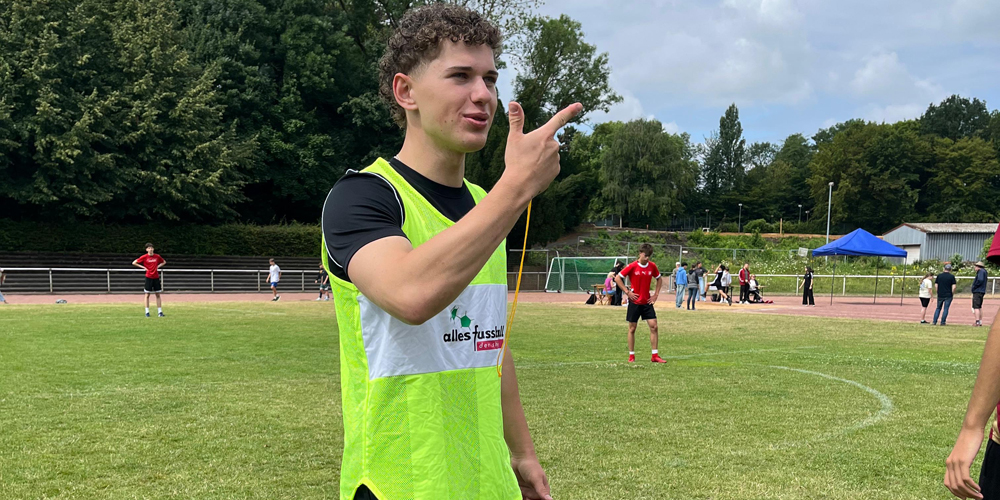 Großartige Unterstützung erfuhren die Cheforganisatoren Jens Michaelis und Sandra Hembach von zahlreichen Schüler:innen auf der EF sowie dem Sporthefer-Team. "Es macht Spaß, Verantwortung mit guten Freunden zu übernehmen und ein Teil des Wettbewerbs zu sein", sagt Sporthelferin Ida Faßbender, die beim Sprint die Zeiten bis auf die Zehntelsekunde genau nimmt.