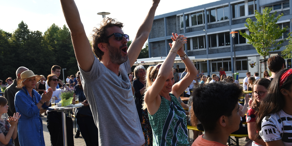 Im Mittelpunkt standen der Auftritt des EMG-Chors, der mit Evergreens der schwedischen Popgruppe ABBA zu überzeugen wusste sowie der alljährliche Auftritt der Lehrerband. Noch einen draufsetzen konnte abschließend die Kölsche Coverband „Kaschämm“, die die ausgelassene Stimmung mit eingängigen Hits auf ihren Höhepunkt und Jung und Alt zum Tanzen brachte.