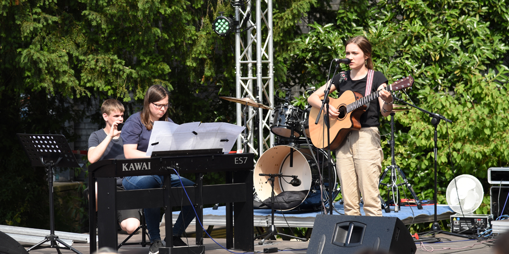 Der Name war Programm - bei sommerlichen Temperaturen zeigte sich das EMG in seiner ganzen kreativen Vielfalt und feierte ein wahres Fest. Zu bestaunen gab es ein buntes Bühnenprogramm mit einer Vielzahl an von Schülerinnen und Schülern gestalteten tänzerischen und musikalischen Attraktionen.