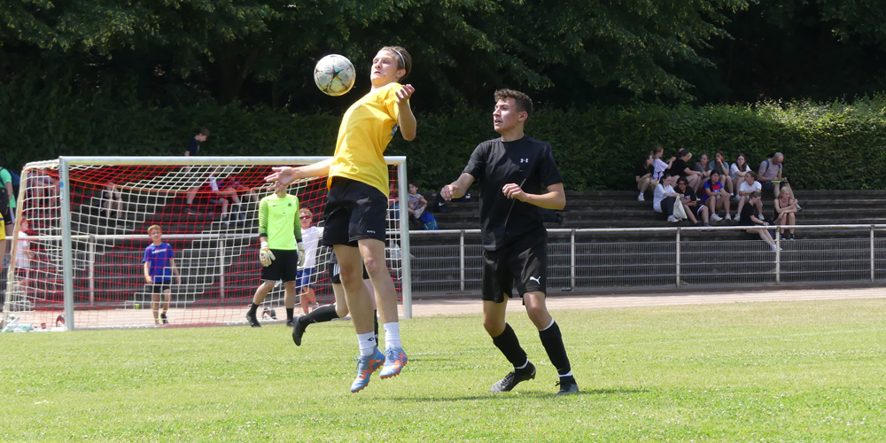 Einmal mehr bedeutete der Fußballklassiker Lehrkräfte gegen Schüler:innen der Q1 im Rahmen des Sportfestes vor allem eines: Durchhalten bei heißen Temperaturen. 2:1 lautete der Endstand einer umkämpften Partie, in der zwei Junglehrer herausstachen.