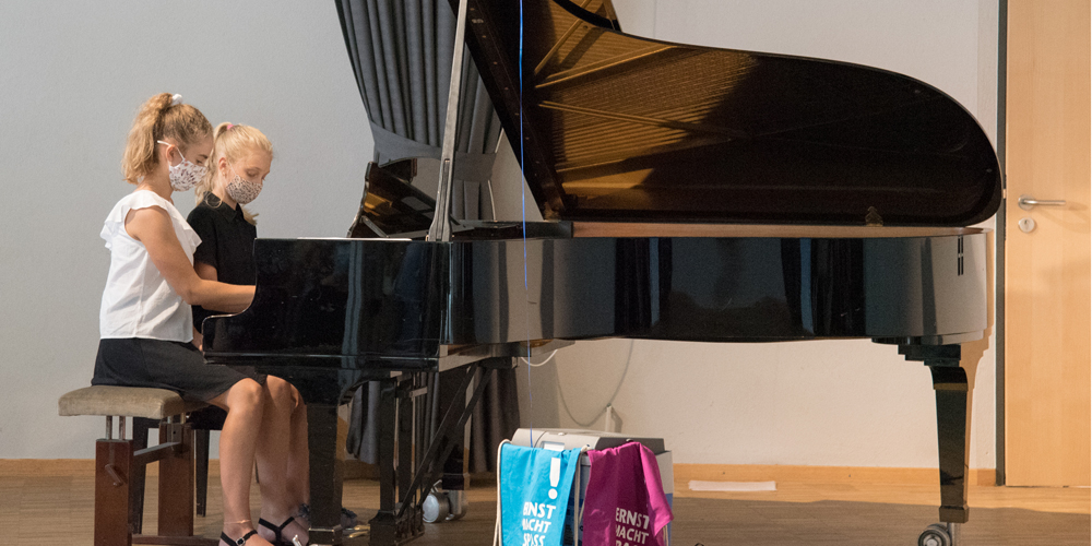 Dazu lieferten auch die Klassensprecherinnen und –sprecher der sechsten Klassen mit ihren guten Wünschen einen wichtigen Beitrag. Musikalisch stimmungsvoll eingeleitet hatten Sofia Villevald und Alexandra Steinle (beide 6b), die den "Entertainer" von Scott Joplin vierhändig auf dem Flügel präsentierten. „Willkommen am EMG“ hieß es zudem in dem eigens für die neue Stufe 5 produzierten Musikvideo des EMG-Chors, das per Beamer eingespielt wurde.