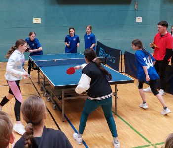 Leider gingen beide Spiele sowie die Spiele um Platz 3 knapp verloren, sodass am Ende für beide Teams ein absolut bemerkenswerter 4. Platz stand. Nach viel Freude und Spaß, einem tollen – auch klassenübergreifenden – Teamgeist und leider auch ein paar Tränen der Enttäuschung können wir festhalten: das EMG kann Tischtennis und viel wichtiger: ERNST MACHt GEMEINSCHAFT!