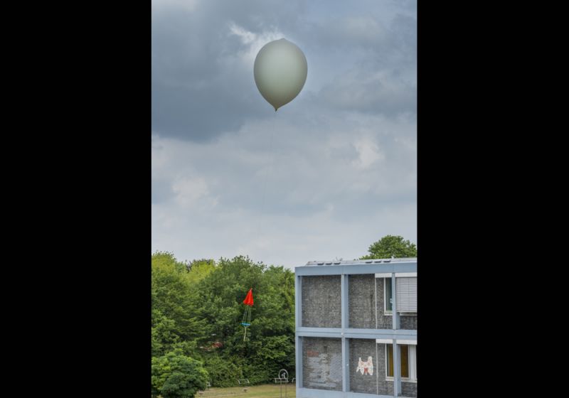 Dann ist es so weit: Etwa zwölf Newton Auftriebskraft ziehen zunächst einige Meter Nylonschnur in die Luft. Eine starke Bö, die den Ballon bedrohlich in Richtung Gebäudewand drückt, flaut endlich ab. Loslassen! Rasch entschwinden Ballon und Sonde unseren Blicken. Ob wir jemals etwas davon wiedersehen, ist in diesem Moment völlig ungewiss.