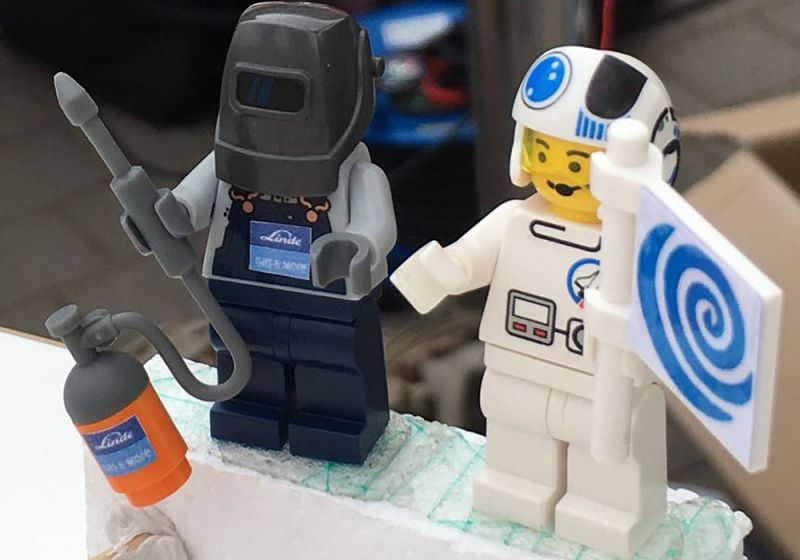 „Wir können starten“, rufen Luca und Jonas aus dem MPI-Kurs. Der Regler an der schweren Heliumflasche wird geöffnet, Gas strömt in den Ballon. Aber auch fünf Minuten später hängt die beige-weiße Gummihülle des Ballons noch schlaff herunter. 25 Liter pro Sekunde weist die Anzeige am angeflanschten Druckminderer aus. 2800 Liter Ballonvolumen bedeuten fast zwei Stunden Fülldauer. Beim nächsten Ballonprojekt rechnen wir vorher.