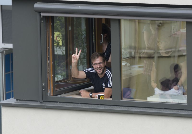 Noch einmal 90 Minuten später schwärmen die MPIler aus, um gegen 11:20 Uhr die Kunde vom unmittelbar bevorstehenden Start im Schulgebäude zu verbreiten. Schulleiterin Gabriele Hüntemann hat ihren Segen für den verfrühten Beginn der zweiten großen Pause gegeben.