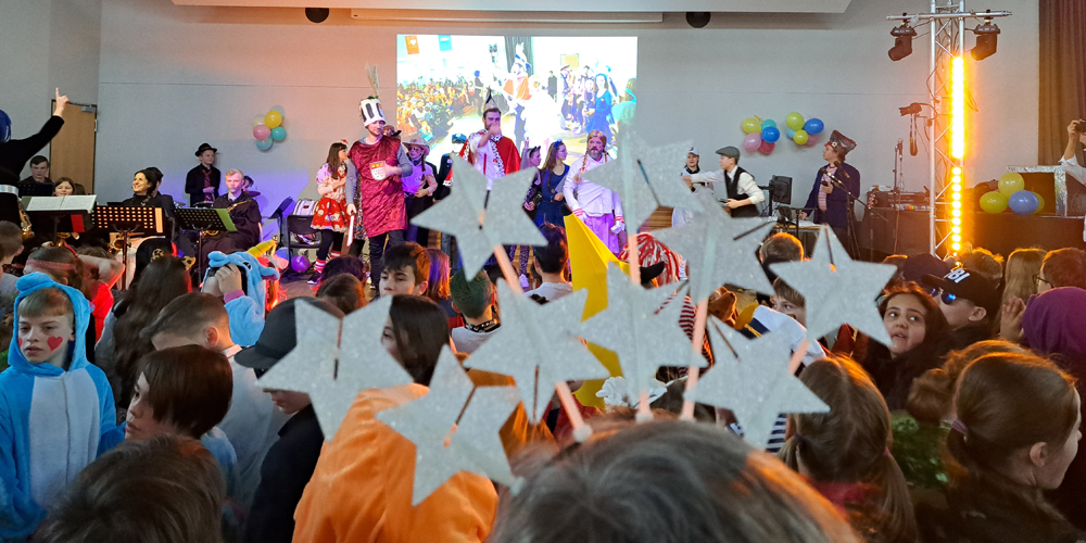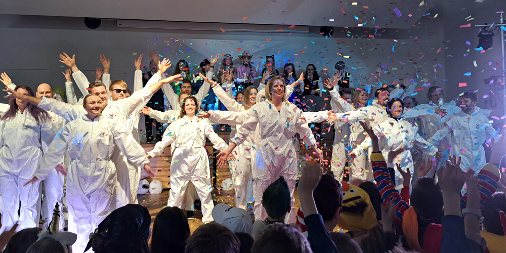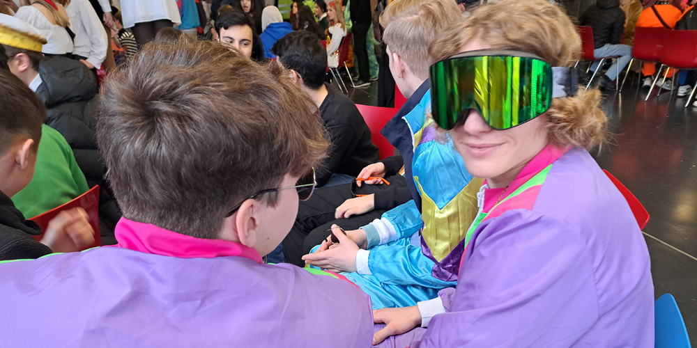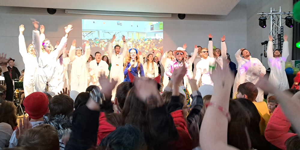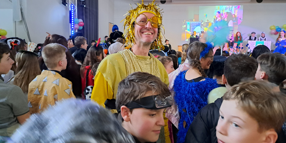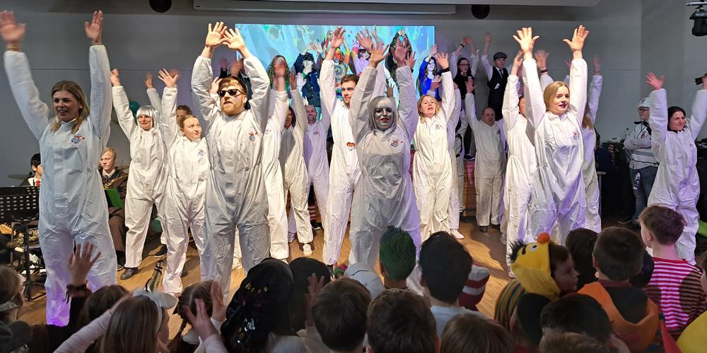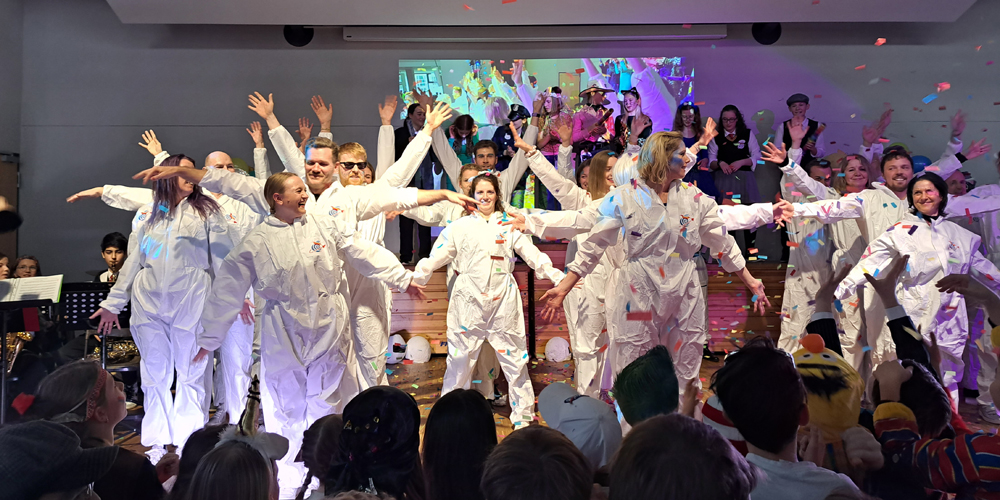 Mit einer galaktischen Sause ist das Ernst-Mach-Gymnasium in die heiße Phase des Karnevals gestartet. Pünktlich zum rheinischen Countdown an Wieverfastelohvend hatten sich die rund 1000 Schülerinnen und Schüler zusammen mit dem Kollegium unter dem Motto „Karneval vum andern Stään – EMG außerirdisch jeck“ in der Schulaula versammelt, um das Brauchtum erstmals seit seit drei Jahren unbeschwert von Corona-Auflagen zu pflegen.
