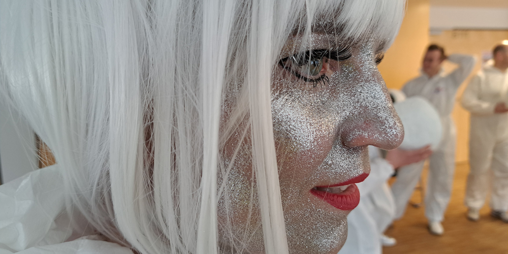 Auf jeden Fall noch Science Fiction war die Landung einer Delegation vom Planeten „Jeck“ am EMG. Nach anfänglicher Verwirrtheit und den typischen Problemen mit den irdischen Schwerkraftverhältnissen gelang es den etwa zwanzig Aliens überraschend schnell, sich vom kölschen Karneval assimilieren zu lassen. Hinter dem außerirdischen Besuch steckte natürlich das EMG-Lehrerballett unter der Leitung von Isabell Kratz.