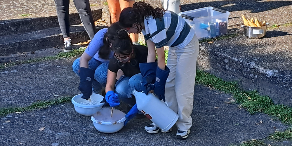Der Tag wurde mit „Stickstoffeis“ beendet. Unsere Schülerinnen am EMG waren rundum begeistert. Melika erklärt: „Ich würde es jeder Schülerin, die Interesse an Physik hat, empfehlen an diesem Projekt teilzunehmen. Es war definitiv eine bereichernde Erfahrung“