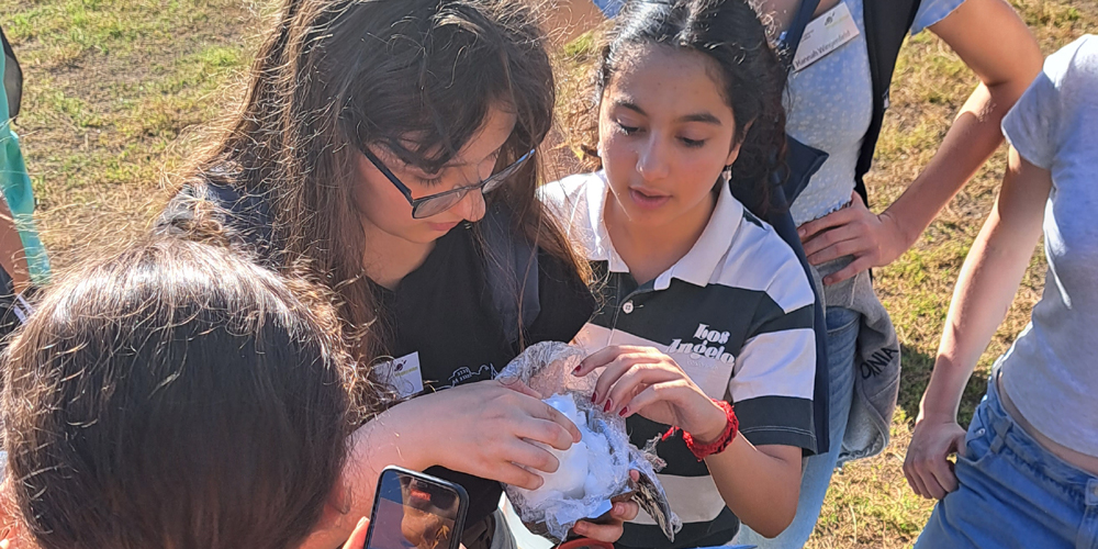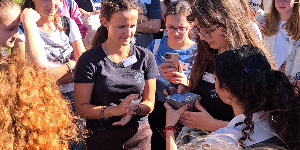 Nach einem Mittagessen in der Mensa der Universität, wurden die Schülerinnen in Kleingruppen eingeteilt, und begannen mit dem Bau von Raketen aus Plastikflaschen. Die Aufgabe bestand darin, eine Rakete so weit wie möglich abzuschießen. Zusätzlich galt es, ein Ei, das in der Rakete transportiert wurde, vor dem Zerbrechen zu schützen. Motiviert fingen die Teilnehmerinnen an, und nach einer Stunde wurden die Ergebnisse vorgestellt.