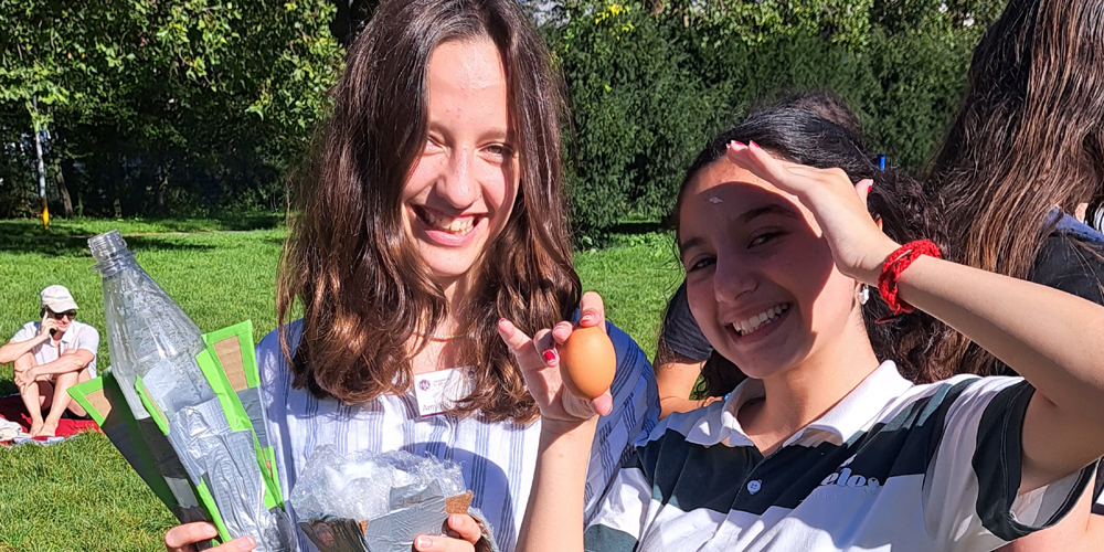 Zusammen begaben sich die Schülerinnen nach draußen und verfolgten dann gespannt, wie die Raketen mithilfe einer Konstruktion, die Wasserdruck als Antrieb benutzt, abgeschossen worden sind. Im Endeffekt rasten die Raketen durch den gesamten Park, und nur zwei von acht Eiern gingen dabei kaputt. Das Gewinnerteam bekam als Belohnung das Buch „What if“, das sich auf humorvolle Weise mit absurden Fragestellungen in der Physik befasst..
