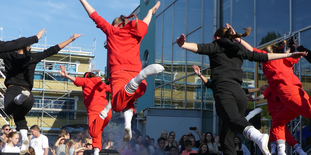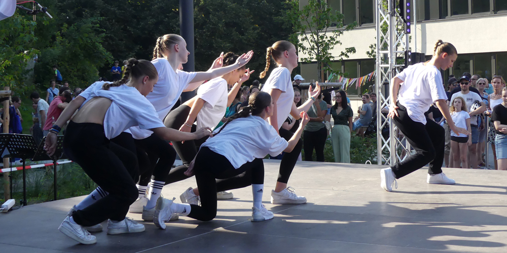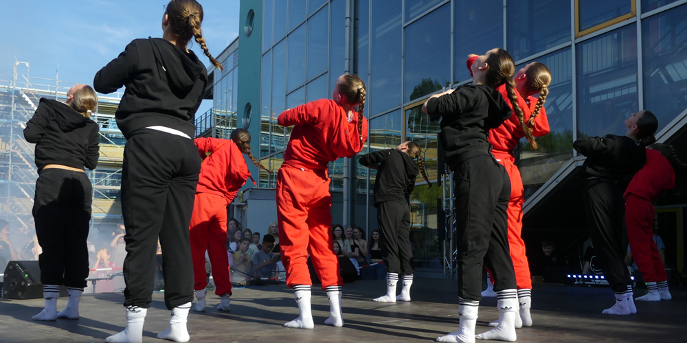 Auch auf der Bühne war einige geboten: Zwei Tanzstudios brachten Bewegung auf die Bühne. Unser ehemaliger Schüler Karim Belhirch, die Gitarren-AG und Medita Nöll und Charlotte Dickneite sorgten für das musikalische Programm.