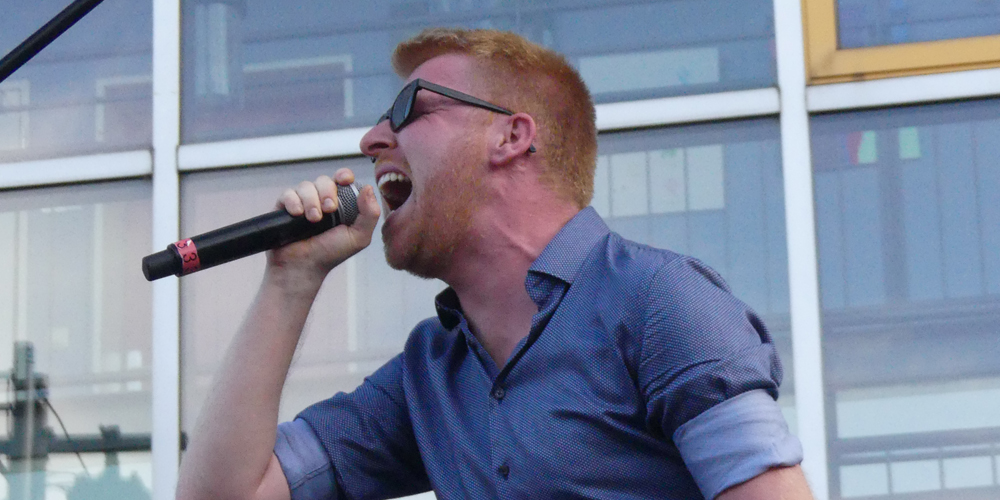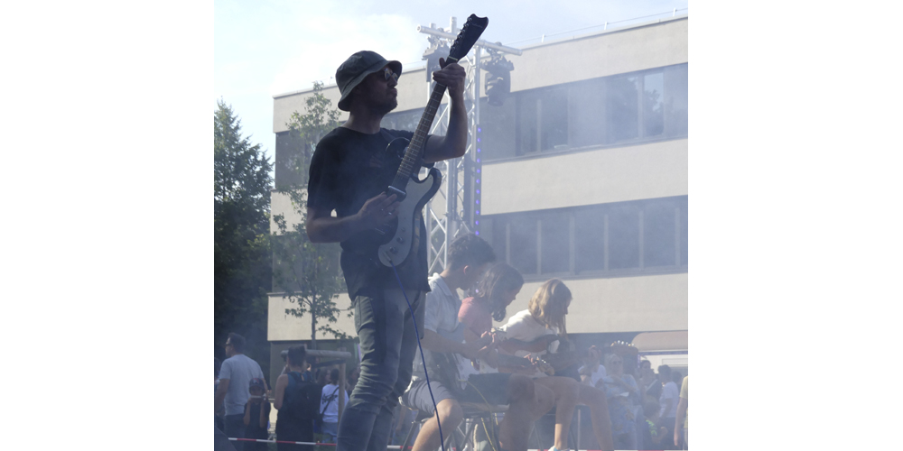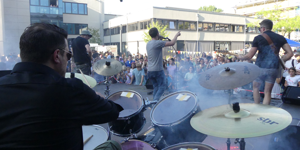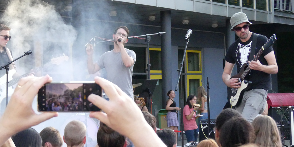 Den Abschluss machte die EMG-Lehrerband, die neben den etablierten Bandmitgliedern André Klöters (Gesang), Christian Koller (E-Gitarre), Lukas Salamon (Bass/Keyboard) und Stefan Gräve (Schlagzeug) ihren neuen zweiten Sänger Dennis Müller präsentierte. Das Publikum sorgte dabei für echtes Festival-Feeling: Es wurde mitgesungen, geklatscht und gesprungen - die pure Eskalation vor der „Centerstage“!
