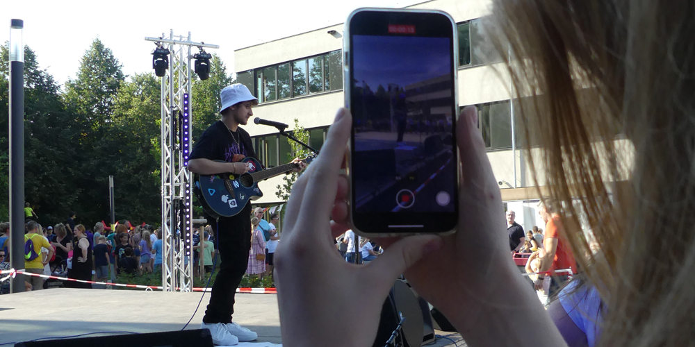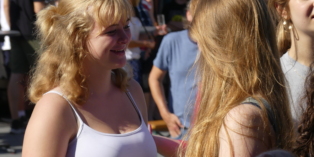 Bei bestem Wetter hieß nach der Schulleitung auch die EMG-Schülerband um Annette Brink die Gäste Willkommen. Bei Pizza, Leckereien vom Grill, erfrischenden Getränken, Kuchen und Slush-Eis konnten die Gäste eine Menge entdecken: Von den Highland-Games der Englisch-Fachschaft bis hin zum Malen für den guten Zweck - die Schulgemeinschaft hatte sich eine Menge ausgedacht, um einen ereignisreichen Nachmittag und Abend zu erleben.