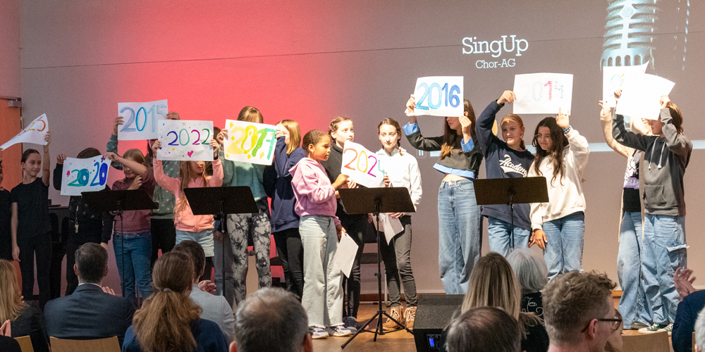 Dem konnte Maxie Detscher nur zustimmen: "Der Ganztag lässt Kinder Schule ganz anders erleben." Konkret wurde dies durch eine ausführliche Vorstellung der Ganztagsaktivitäten. Über 30 AGs und Lernbüros stellen sich auf unterschiedlichste Weise vor: Durch kreative Videos, Demonstrationen der verschiedenen Sportarten und Schüler:innenpräsentationen bekam der Ganztag beim Festakt ein vielfältiges Gesicht.