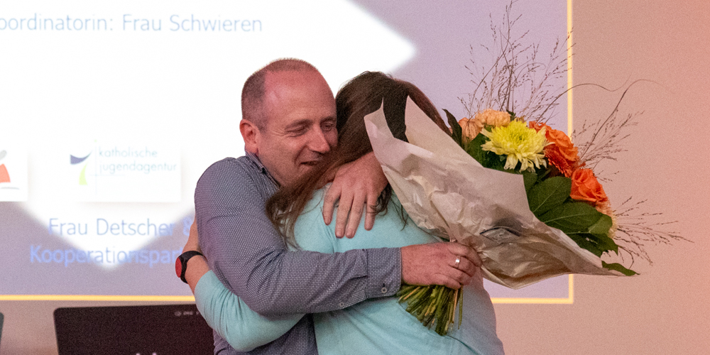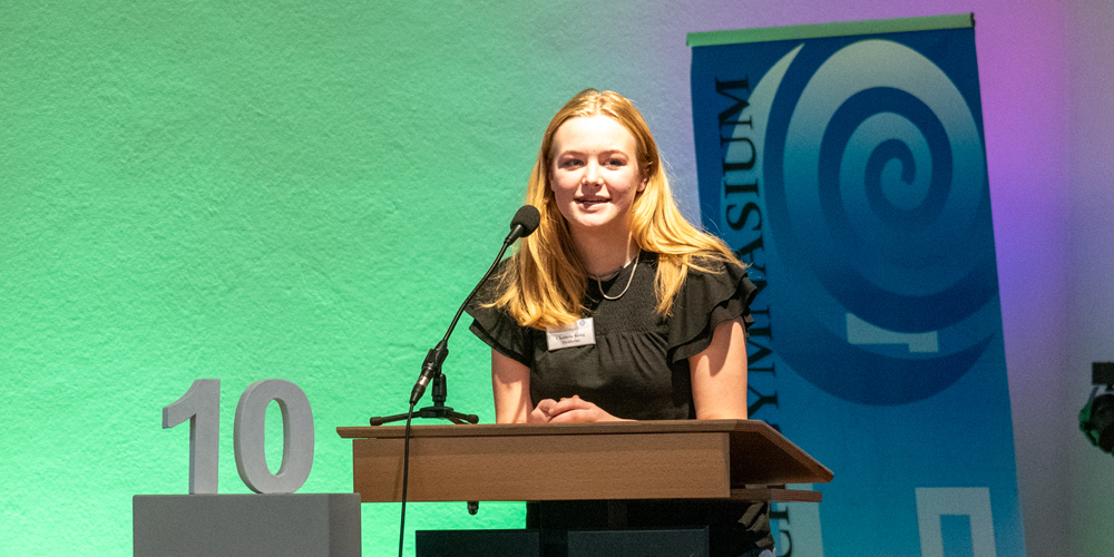 Doch eines wurde spätestens bei den Ehrungen zum Ende der Veranstaltung klar: Für die Schüler:innen ist und bleibt das Gesicht des Ganztages Maxie Detscher, die mit ihrer zugewandten und immer positiven Haltung viele Menschen an unserer Schule in den letzten zehn Jahren geprägt hat. Die Schüler:innen prämierten dieses Engagement mit einem emotionalen Dankesvideo.