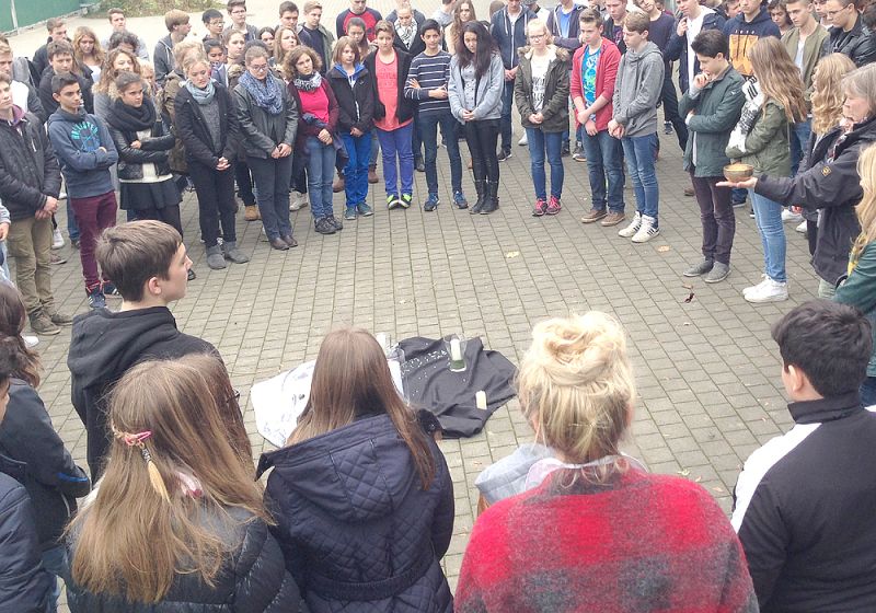 Am Montag, dem 16.11., veranstalteten wir um 12 Uhr mit Frau Korf eine Schweigeminute für die Opfer und die Angehörigen der Terroranschläge von Paris. Nicht nur wir zeigten unser Mitgefühl, sondern auch tausende Menschen in ganz Europa trauerten mit. Anschließend sprachen wir mit Frau Korf und Frau Kreucher darüber, woran wir gedacht haben und wie wir uns währenddessen gefühlt haben.