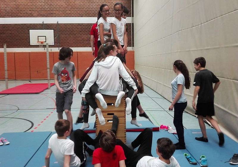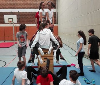 Im zweiten Block „Ich in der Gruppe“ konnte man zwischen einem Theaterworkshop, einem Teambildungstraining und Rollenwahrnehmung wählen: Bei Frau Ingenfeld und Herrn Lenzer wurde über die Jungen- und die Mädchenrolle gesprochen und das Chaos-Spiel gespielt. Bei Frau Stascheit und Frau Würminghausen konnte man sich in der Sporthalle bei Teambildungsspielen austoben und bei Frau Barkow wurde in einem Theaterworkshop selbstbewusstes Auftreten trainiert und in Improvisationsübungen Kreativität und Spontanität verlangt.