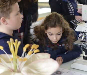Wie auf einer Messe konnten die Gäste die verschiedenen Räume abklappern und überall mal reinschnuppern, sei es in der Physik, wo bei verschiedensten Versuchen selber Hand angelegt werden durfte, oder im Computerraum, wo der Erdkunde-LK die Viertklässler per Google Earth mit auf eine Reise rund um den Globus nahm.