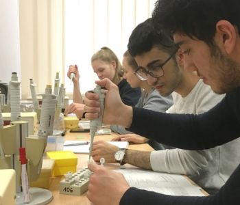 Das Labor war sehr schlicht aufgebaut, es gab mehrere Schränke und Arbeitstische. Auf unseren Arbeitstischen stand pro Gruppe ein Ständer mit vier Pipetten, die auf den Mikrometer genau arbeiten. Zusätzlich mehrere Boxen mit verschiedenen Aufsätzen für die Pipetten.
