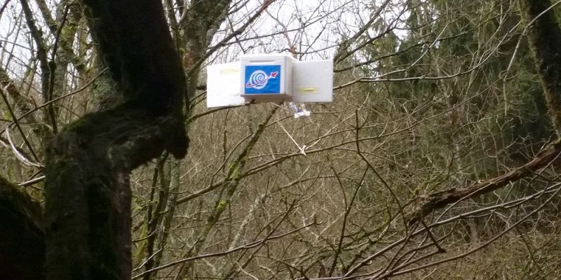„Wir könnten die Anwohner fragen, ob jemand eine lange Leiter hat“, schlägt Jan Hötzel vor. Vielleicht kommt man aber von der steilen Böschung neben dem Baum an die Sonde heran. Wir entdecken einen umgestürzten zehn Meter langen Baum, den wir so gerade noch gehoben bekommen. So gut es geht befreien wir ihn von den Ästen und beginnen unsere Operation.