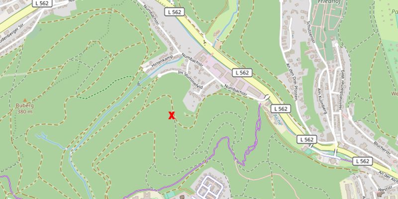 Anders als im Vorjahr gibt es also auch keinen Aufschrei der Erleichterung, als Schröder im Bergischen Land die Kontaktaufnahme verkündet. Die Sonde meldet sich per SMS aus etwa 380 Metern Höhe, was uns zunächst überrascht, da wir erst in tieferen Regionen mit der Registrierung im Handynetz gerechnet haben. Erst nachdem das Modul sich aus immer gleiche Höhe vom immer gleichen Ort meldet, zählen wir Eins und Eins zusammen: Wir steuern das Rothaargebirge an. Die Sonde ist nicht mehr in der Luft, sondern in knapp 400 m Höhe gelandet.