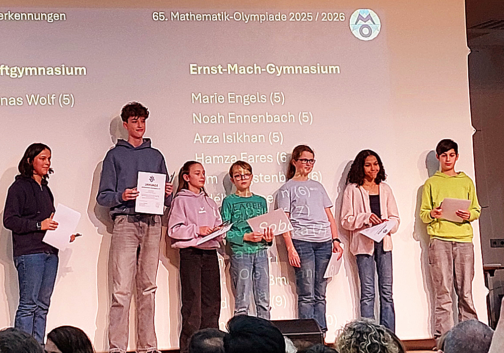 Damit hat das Ernst-Mach-Gymnasium bei einem der schwierigsten Mathe-Wettbewerbe auf schulischer Ebene mit 13 Preisträgerinnen und Preisträgern und 12 Anerkennungen sehr erfolgreich abgeschnitten.