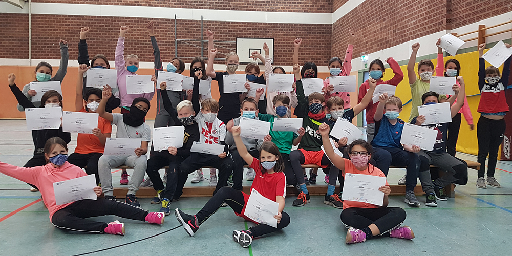 Trotz der coronabedingten Sperrung der Sporthalle hat die Klasse 5d tolle sportliche Erfolge erzielt. Angelehnt an das Deutsche Sportabzeichen bewiesen sich die Schülerinnen und Schüler über einen Zeitraum von mehreren Wochen in den Disziplinen Ausdauer, Schnelligkeit, Kraft und Koordination.