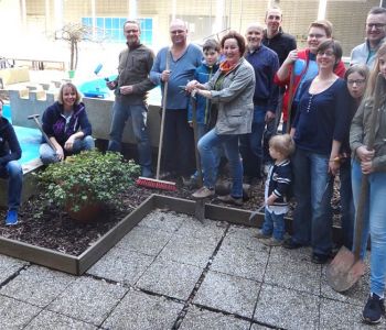 Nachdem der Förderverein mit einem gemeinsamen Arbeitstag im November 2014 den Startschuss für die Wiederinstandsetzung des Innenhofs im A-Gebäude gab, traf sich nun erneut eine bunte Truppe von Eltern und Schülerschaft an einem sonnigen Aprilsamstag, um gemeinsam nächste wichtige Schritte hin zur schönen Gestaltung des Innenhofs zu realisieren.