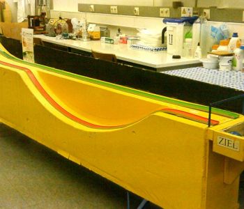 Danach haben wir aus einem Motor und verschiedenem Krimskrams ein kleines Boot gebaut. Als wir fertig waren sind wir zur nächsten Station gegangen. Dort haben wir die Laufzeiten von Kugeln auf verschiedenen Bahnen untersucht. Vollkommen überraschend war die Kugel mit dem längeren Weg schneller, obwohl sie den gleichen Höhenunterschied zurückgelegt hat.