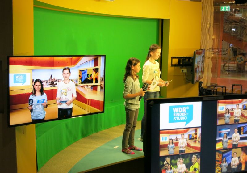 Um sich langsam an die Produktion der Fernsehnachrichten heranzutasten, startete der Workshop mit dem „Greenscreen“. Auf die grüne Wand projizierte ein Techniker allerlei lustige und teilweise skurrile Hintergründe, mit denen die jungen Fernsehtalente kreativ interagieren konnten. So konnte man sich an das helle Licht und die Arbeit mit der Kamera gewöhnen und durch die ausgelassene Stimmung war die anfängliche Nervosität vor der Kamera wie weggeblasen. Apropos: Der krönende Abschluss des Tages war eine täuschend echte Simulation eines „Superman-Fluges“ über Köln inklusive Windmaschine.