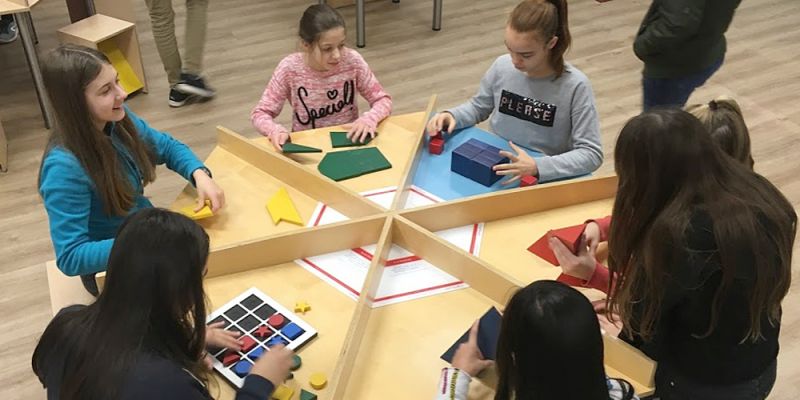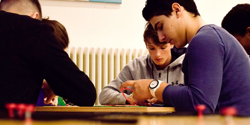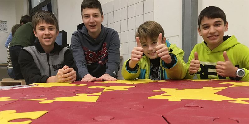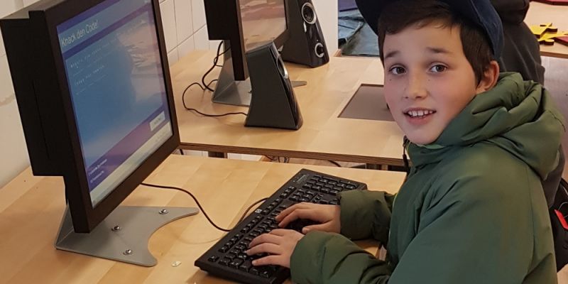 Daniel hat’s geschafft. Der zehn Jahre alte Grundschüler hat aus den vier roten Schaumgummiklötzen eine dreiseitige Pyramide zusammengesetzt. Jetzt schweifen seine Blicke durch den Raum auf der Suche nach neuen Forschungsvorhaben. „Versuch doch mal einen Text zu entschlüsseln“, schlägt Mathelehrer Sebastian Hoheisel vor und zeigt auf den Computerterminal neben der Eingangstür.
