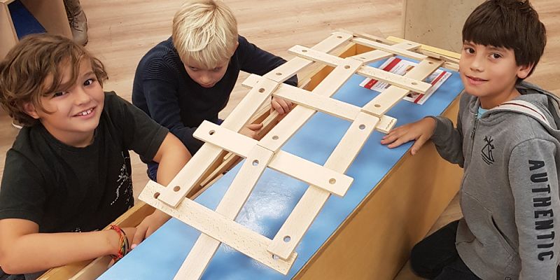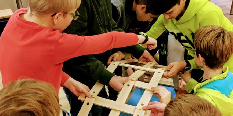 Rätsel und Aufgaben hält die Wanderausstellung „Mathematik zum Anfassen“ des Gießener Mathematikums jede Menge bereit. Beim zweiwöchigen Gastspiel der Ausstellung am Ernst-Mach-Gymnasium erwies sich die „da-Vinci-Brücke“ als größte Herausforderung. Erst einer Gruppe Mathematik-Leistungskurslern vom Gymnasium Brühl gelang es nach ein paar Tagen, die Konstruktion aus Holzleisten, die ohne jede Befestigungshilfe zusammengesetzt werden mussten, in voller Größe zu präsentieren.
