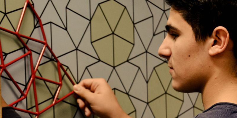 Viele Besucher nutzen die Gelegenheit am Ernst-Mach-Gymnasiums auch, um mit dem vorliegenden Material einfach nur zu spielen. „Das schöne an der Ausstellung ist, dass jeder Besucher seinen eigenen Zugang zur Mathematik findet“, sagt Sebastian Hoheisel, der die Ausstellung ans EMG geholt hat und auch maßgeblich an der Besucherbetreuung beteiligt war.