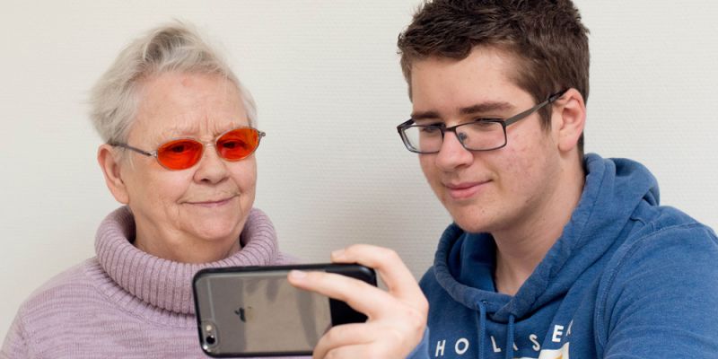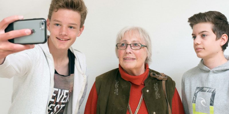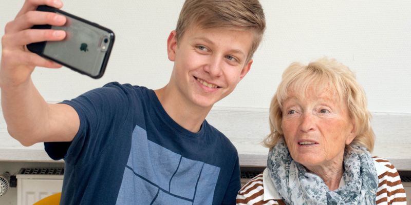 Und hier das erste Beispiel: Ein Selfie ist heutzutage eine gängige Methode sich zu präsentieren. Man dokumentiert damit z.B., das was man macht, oder guckt, ob die Frisur sitzt. Aufgrund dessen haben Schülerinnen und Schüler vor einigen Monaten Selfies mit Demenzkranken gemacht. Es entstand eine Verbindung zwischen Alt & Jung und der Tag wurde mit einem Selfie als Erinnerung festgehalten.