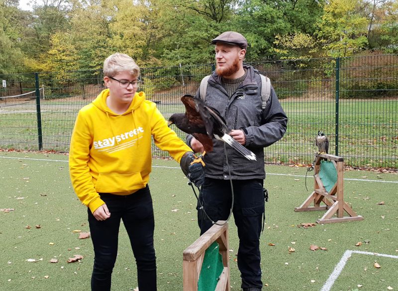 Am Dienstag haben wir erarbeitet, wie wir die Lernmethoden anwenden können. Vier Mindmaps sind entstanden. Am Mittwoch hatten wir Besuch von einem Falkner, der seine Tiere mitgebracht hat. Jeder von uns durfte die Tiere auf die Hand nehmen: Am gleichen Tag haben wir uns alle im Bogenschießen versucht. Donnerstag haben wir am Beispiel „Debora“ einiges von dem angewendet, was wir bis dahin gelernt hatten.