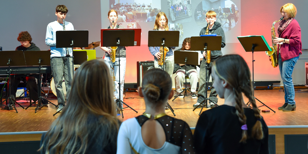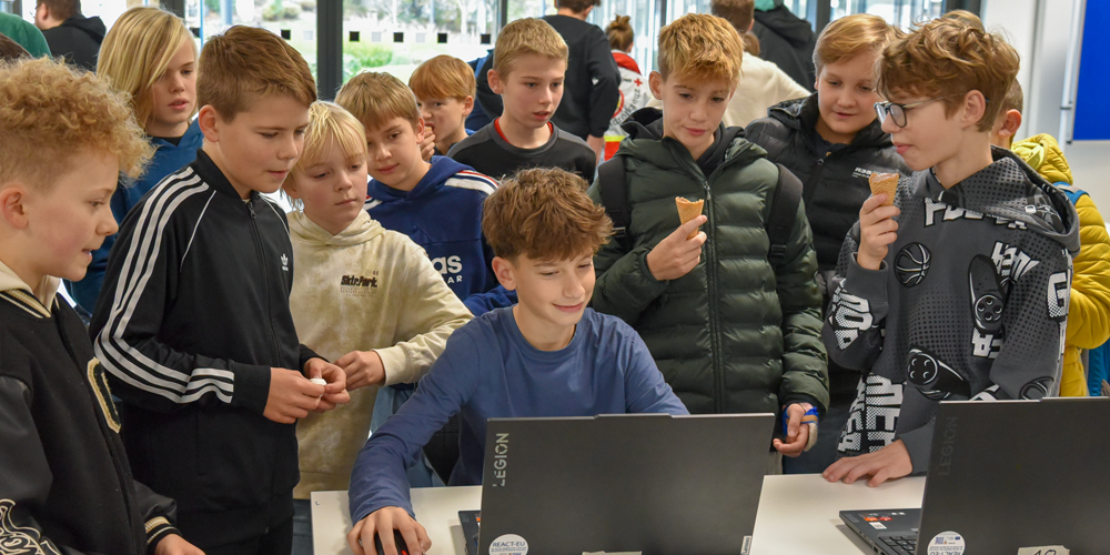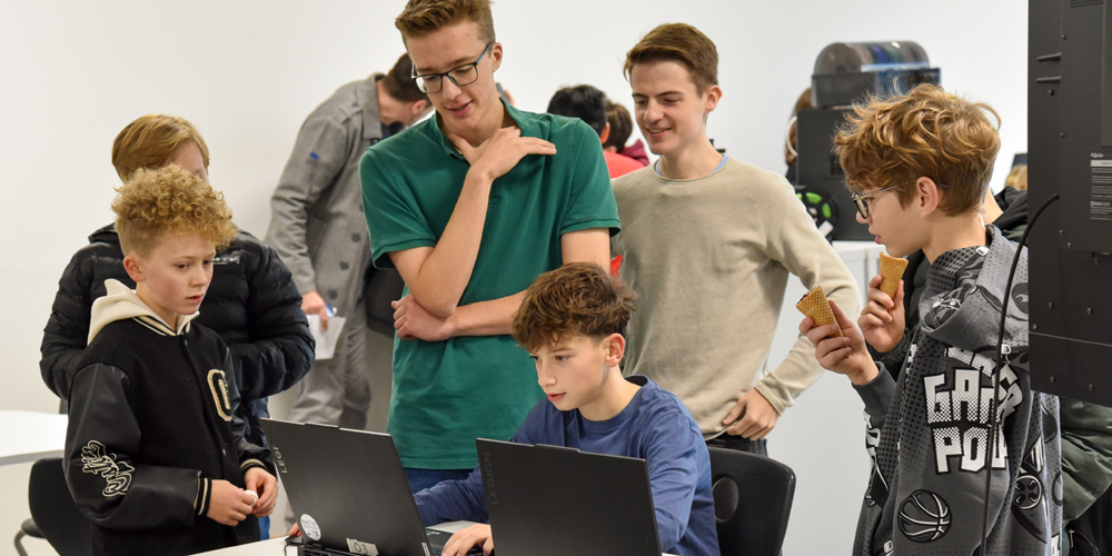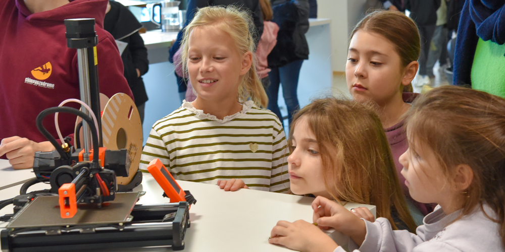 Und wurde an der Bonnstraße - unter Federführung von Dorothee Behr - kurzerhand das Angebot ausgeweitet. Mehr Mitmachunterricht, mehr Schüler:innen und Schüler, die als Guides und Ansprechpartner:innen für die breite Fächerauswahl und Workshops zur Verfügung standen.