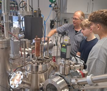 Und so kam es, dass der Physik-Leistungskurs aus der Stufe Q1 den vorletzten Schultag für eine Exkursion an die Physikalischen Institute der Universität zu Köln nutzte. Dank der spontanen Unterstützung von Schülermutter Petra Neubauer-Günther blieb es nämlich nicht beim Vorlesungsbesuch: Im Rahmen zweier Führungen durch die Laborräume erhielt die Schülerinnen und Schüler konkrete Einblicke in die Forschungsarbeit auf dem Gebiet der Festkörperphysik.