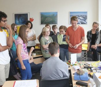 Unser Kurs bestand aus 17 Schülerinnen und Schülern und zwei hochqualifizierten Kursleitern, dem „Native Speaker“ Peter und Tim (die wir übrigens duzen durften). So spielten wir zunächst einige Kennenlernspiele und diskutierten anschließend über die Frage: „What is nanotechnology?“. So endete der Tag und erst nach der ersten Nacht ging es erst richtig los.