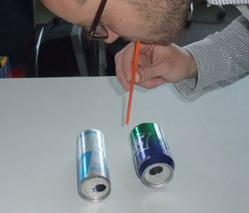 Wie sieht eine Bewegung aus, wenn man sie durch einen Wasser gefüllten Glaszylinder beobachtet? Dies war eine von insgesamt 13 Problemstellungen, mit der Physik interessierte Schülerinnen und Schüler am Ernst-Mach-Gymnasium konfrontiert wurden. Damit es noch ein bisschen spannender wird, gab es bei der „Frage der Woche“ auch etwas zu gewinnen.