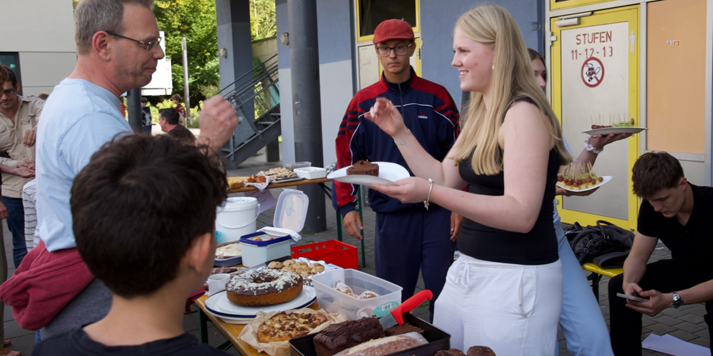 Auch für das leibliche Wohl war bestens gesorgt: Neben Würstchen, Crêpes der 7E und dem alljährlichen Getränkewagen bot die Q1 ein buntes Kuchenbuffet und erfrischende Slushies.