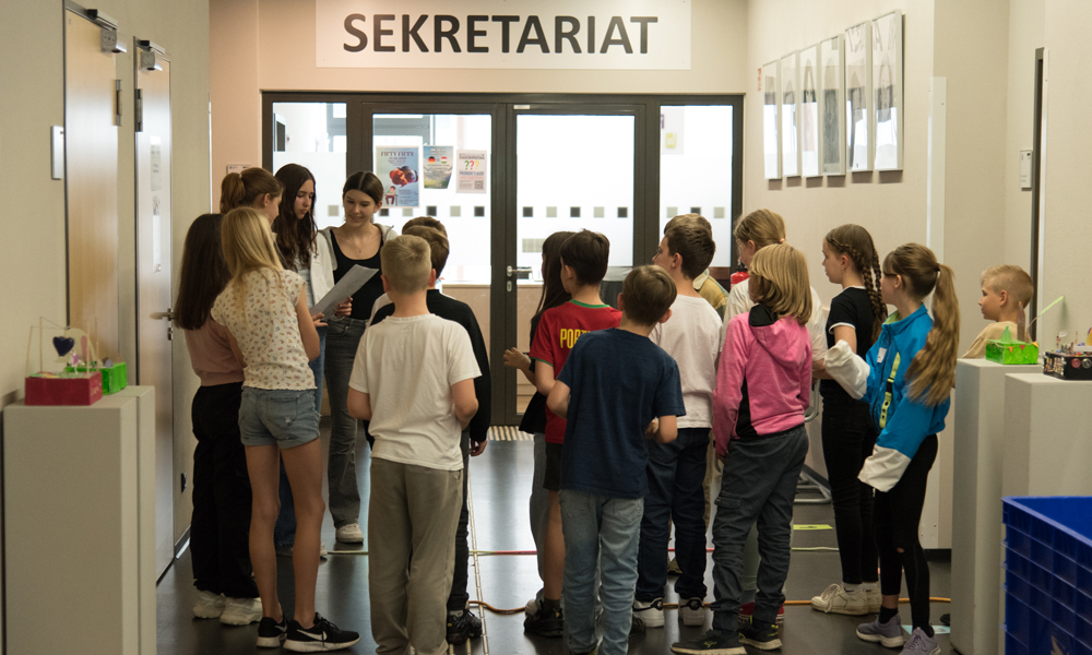 Gemeinsam mit ihren Klassenpaten aus der Stufe 8 erkundeten die zukünftigen EMGler im Rahmen einer Schulrallye Gebäude und Gelände des EMGs. Mit Hilfe von kleinen Bildkarten galt es an insgesamt 15 Stationen ein kleines Detail zu entdecken und eine Frage zu beantworten. So konnten die Jungen und Mädchen nicht nur einen ersten Rundgang durch ihre neue Schule machen, sondern sie erhielten von den engagierten Klassenpatinnen und -paten auch Antworten zu vielen Fragen rund um das EMG.