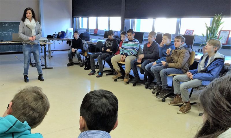 Viele Kinder nutzen die neuen Medien täglich. Umso wichtiger ist es, ihnen den kompetenten Umgang mit Smartphone und Co. näherzubringen. Daher informierte Martina Rautenberg von der „Kriminalprävention Opferschutz“ der Polizei im Rahmen des Präventionskonzeptes für die Erprobungsstufe über WhatsApp, (Cyber-) Mobbing, mögliche strafrechtliche Folgen für Täter und Hilfsangebote für Opfer. Frau Rautenberg hob zum Beispiel hervor, wie wichtig es sei „in einem Chat gegenüber Unbekannten niemals private Daten wie die Adresse preiszugeben.“ Die Schülerinnen und Schüler nutzten die Veranstaltung ebenfalls zum regen Austausch und zur Weitergabe von Tipps zum sicheren Surfen im Netz.