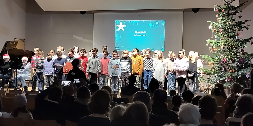 Darüber hinaus gab es eine weitere Premiere: zwei Stufenchöre! Im Musikunterricht der jeweiligen Klassen wurde in den vorherigen Wochen eifrig ein gemeinsames Lied für die Erprobungsstufe und eines für die Mittelstufe einstudiert.