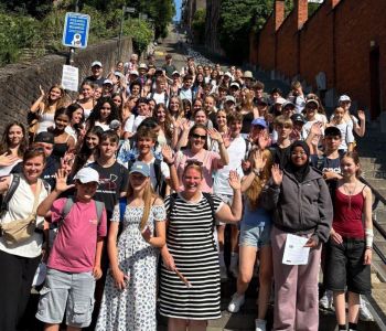 Am Mittwoch ging’s für uns, die Französischkurse der Jahrgangsstufe 8, auf große Fahrt nach Belgien! Nach etwa zwei Stunden Busfahrt kamen wir in Lüttich an. Direkt als Erstes ging es für uns zur bekannten Montagne de Bueren – einige von uns haben tatsächlich die vielen Stufen (374!!) gemeistert!