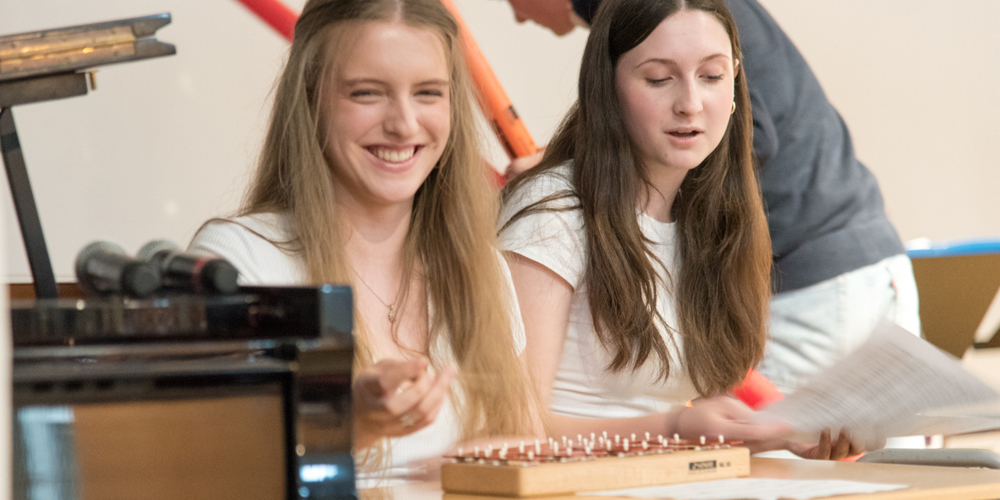 Im zweiten Teil präsentierten die Musik-Grundkurse ganz unterschiedliche Einblicke in den Musikunterricht: Schülerinnen und Schüler aus dem Kurs von Annette Brink stellten Kompositionen im Stile der Elektropop-Gruppe Kraftwerk vor, Schülerinnen und Schüler aus dem Kurs von Samira Prégardien musizierten Edith Piafs Klassiker „La Vie En Rose“.