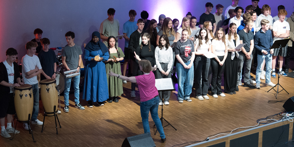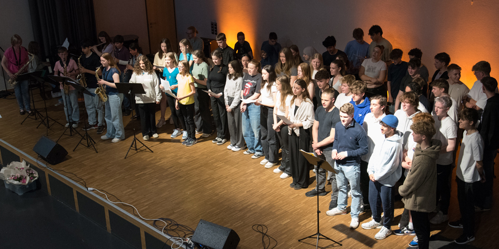 Am Ende sprach Thomas Knechten allen beteiligten Schülerinnen und Schülern sowie der Fachschaft Musik seinen großen Dank aus. Begeistert zeigten sich aber auch viele Eltern: „Was ihr aus den Schülern rausholt – gerade wenn sie kein Instrument spielen! Das ist toll!“