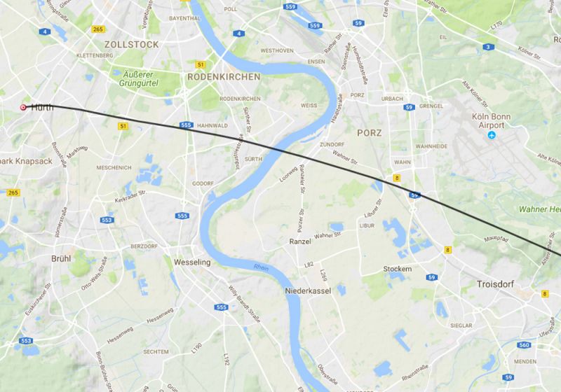 Während der quälenden Schleichfahrt durch den Kölner Wochenendverkehr versuchen wir den Tracker telefonisch zu erreichen. Dass der Kontakt schnell abgerissen ist, beunruhigt Niemanden. Schließlich sind in die Mobilfunkantennen nicht für größere Höhen ausgerichtet. Nach gut zwei Stunden Flug nähern wir uns aber dem Zeitfenster, in dem mit der Landung zu rechnen ist.