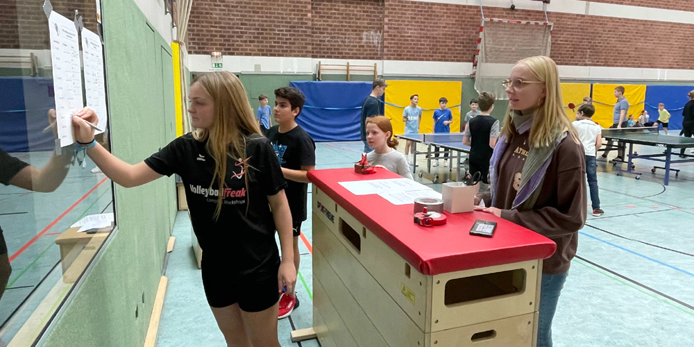 Ein großes Dankeschön an die beteiligten SporthelferInnen Lotte Blum, Aurelia Elsweier, Charlotte Krieg, Alexandra Steinle und Frederik Steines, die auch in den turbulentesten Situationen als Schiedsrichter an den Tischen den Überblick behielten!